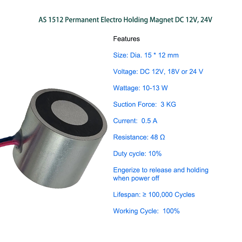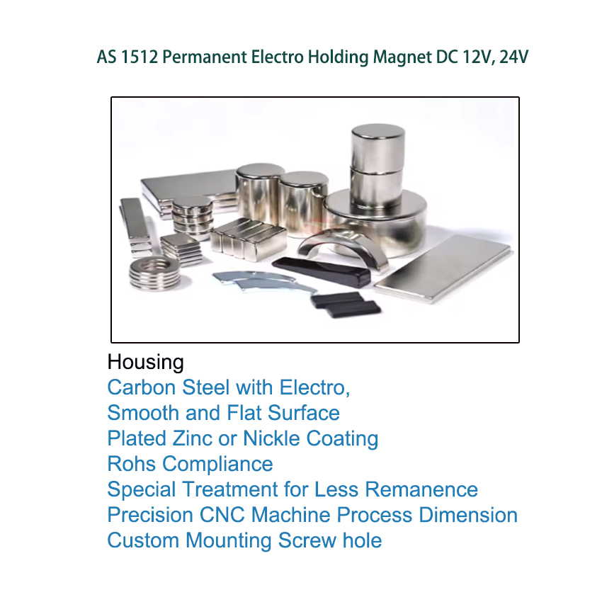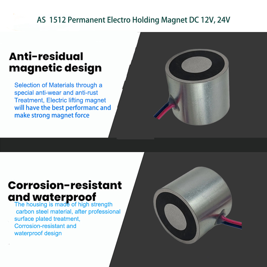 The AS 1512 Permanent Electro Holding Magnet DC 12V, 24V is a high-performance industrial component engineered for fail-safe, energy-efficient holding operations. Boasting power-off magnetic holding capability, it securely clamps ferromagnetic workpieces without continuous power, ensuring safety during power outages and cutting energy use by 95%. Its dual 12V/24V DC voltage compatibility fits most industrial power systems, delivering stable, high holding force for automation, machinery, access control and fire door applications. Designed with a robust build for demanding working conditions, it offers zero remanent magnetization after release and easy integration into existing setups. We provide flexible OEM customization for specific force and mounting needs, with fast global delivery and competitive bulk pricing for manufacturers and system integrators.