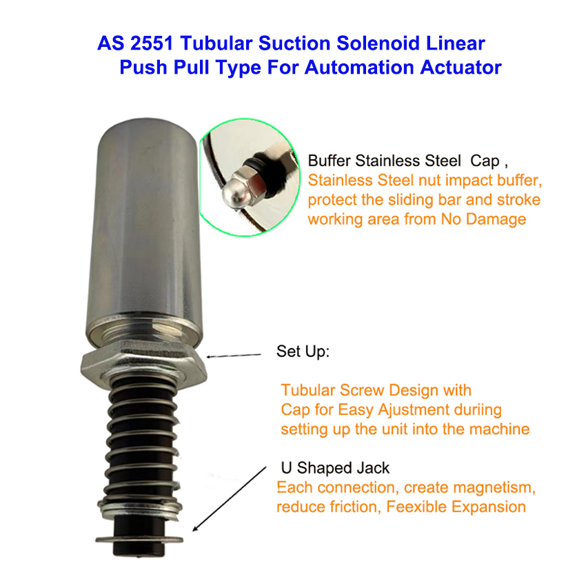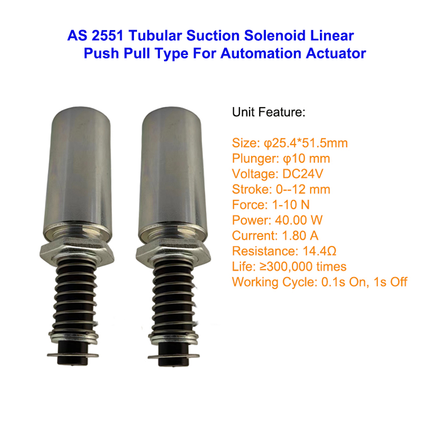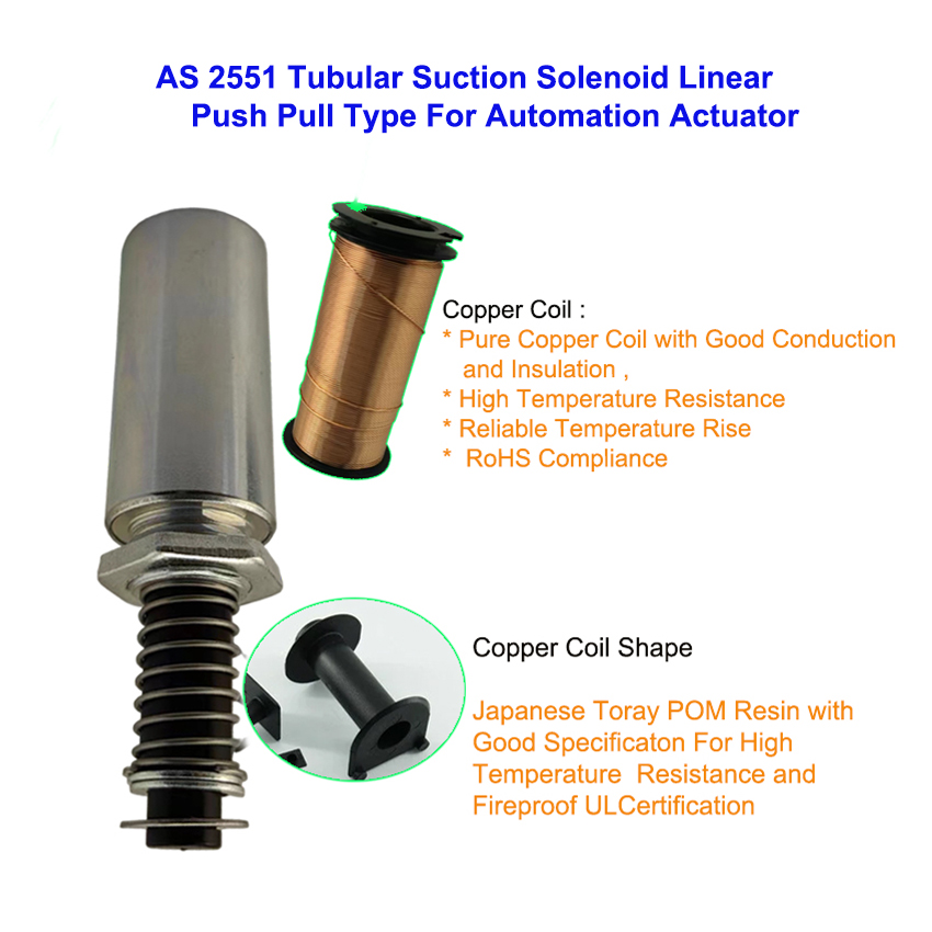 AS 2551 Linear Push Pull Tubular Suction Solenoid Electromagnet for Automation Actuator