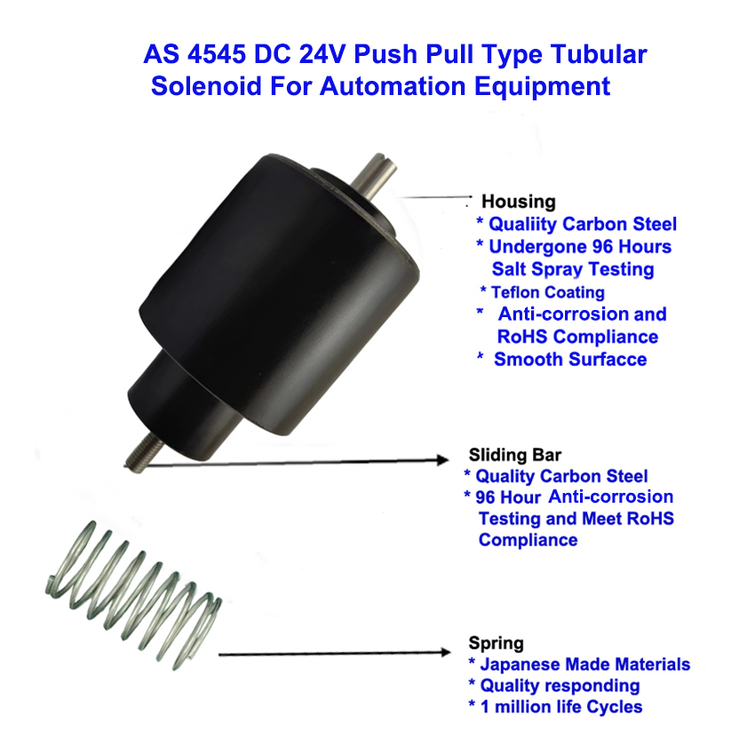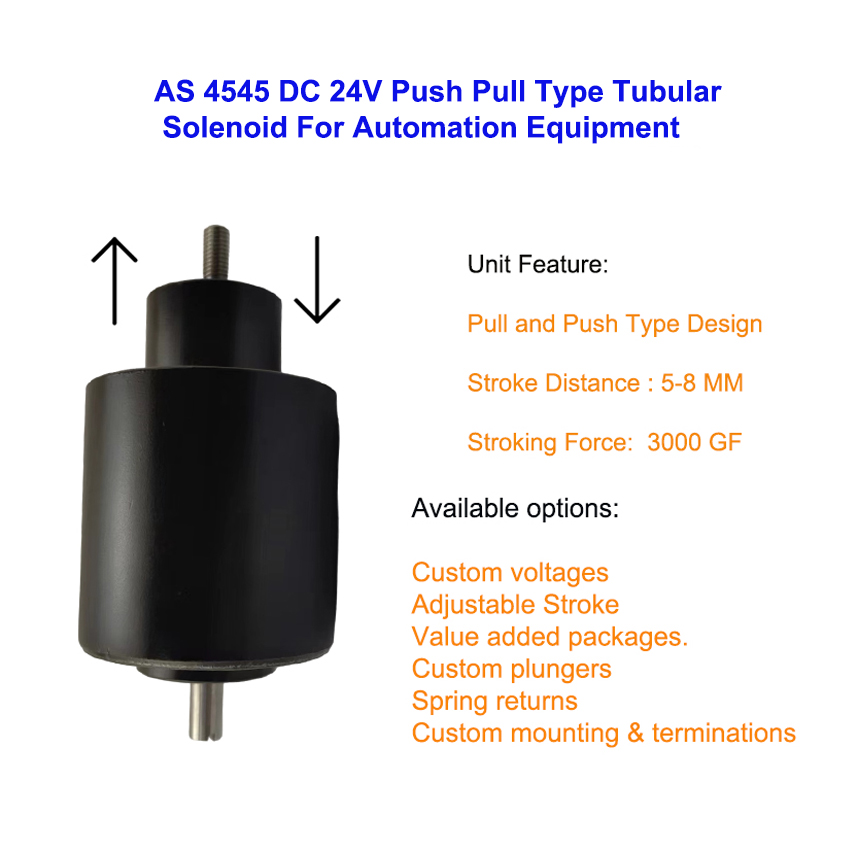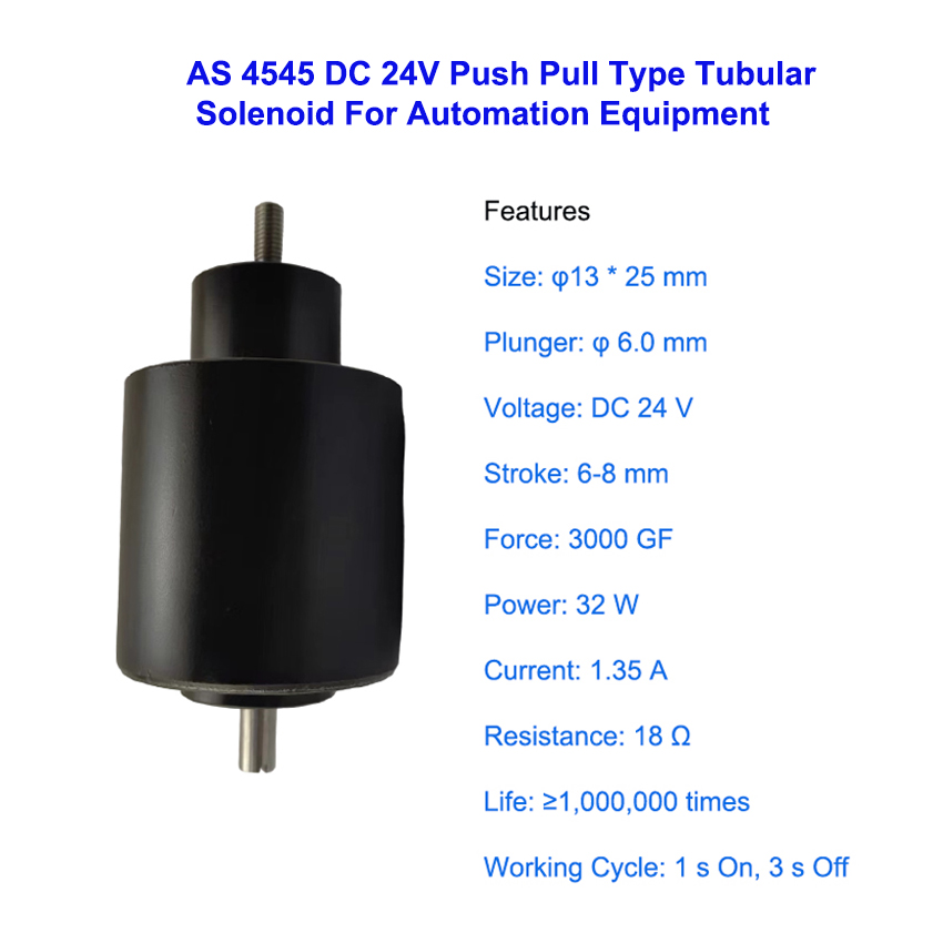 AS 4545 DC 24V Tubular Push Pull Solenoid for Industrial Automation Equipment