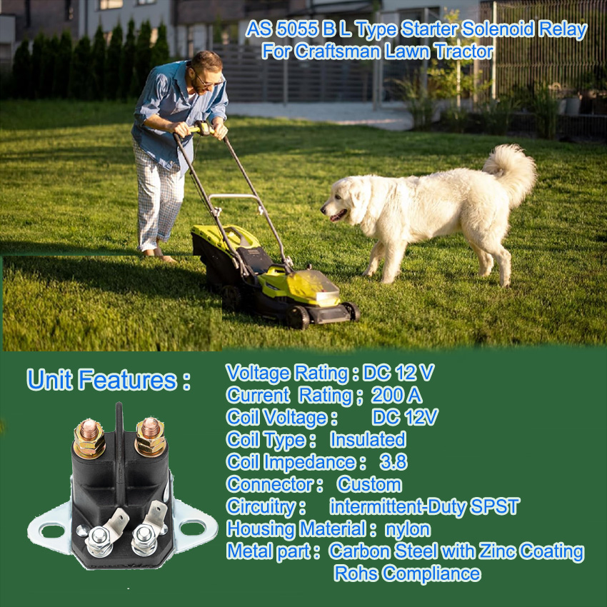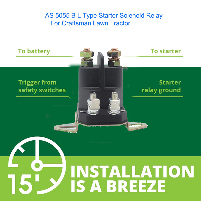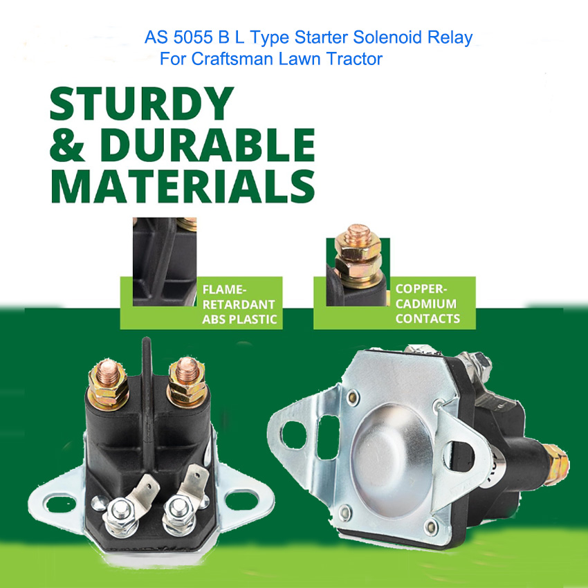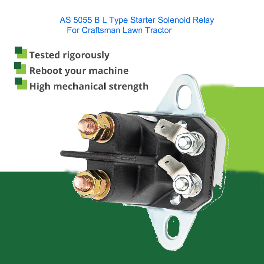 Upgrade your Craftsman Lawn Tractor with the AS 5055 B L Type Starter Solenoid Relay. This 12V replacement part offers stable performance, strong conductivity, and excellent heat resistance. It provides an exact OEM-style fit for easy installation, saving you time and effort on repairs. Made with high-quality components, it ensures reliable starting and long-lasting durability even under frequent use. Perfect for replacing damaged or old solenoids, it restores full starting functionality to your tractor. This professional-grade relay is built for safety and efficiency, making it an ideal choice for maintaining your Craftsman lawn tractor in top working condition.