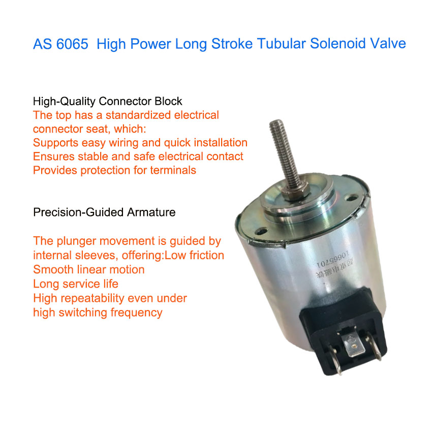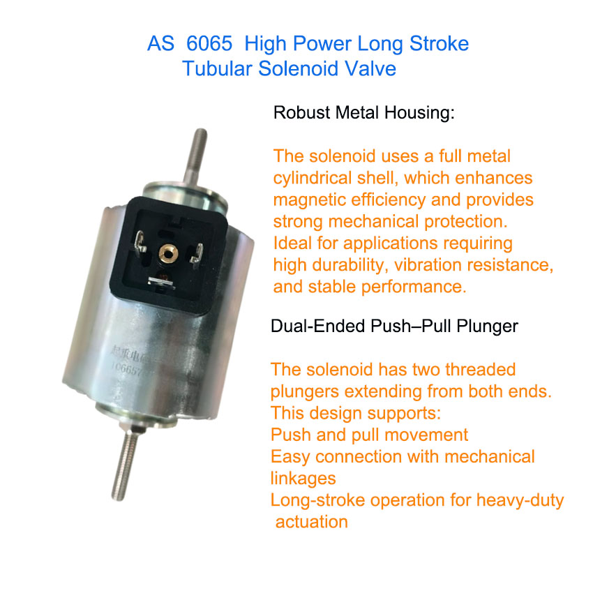 Plunger/Core: Constructed from high-grade magnetic steel, precision-machined to ensure smooth, dependable operation across extended strokes.