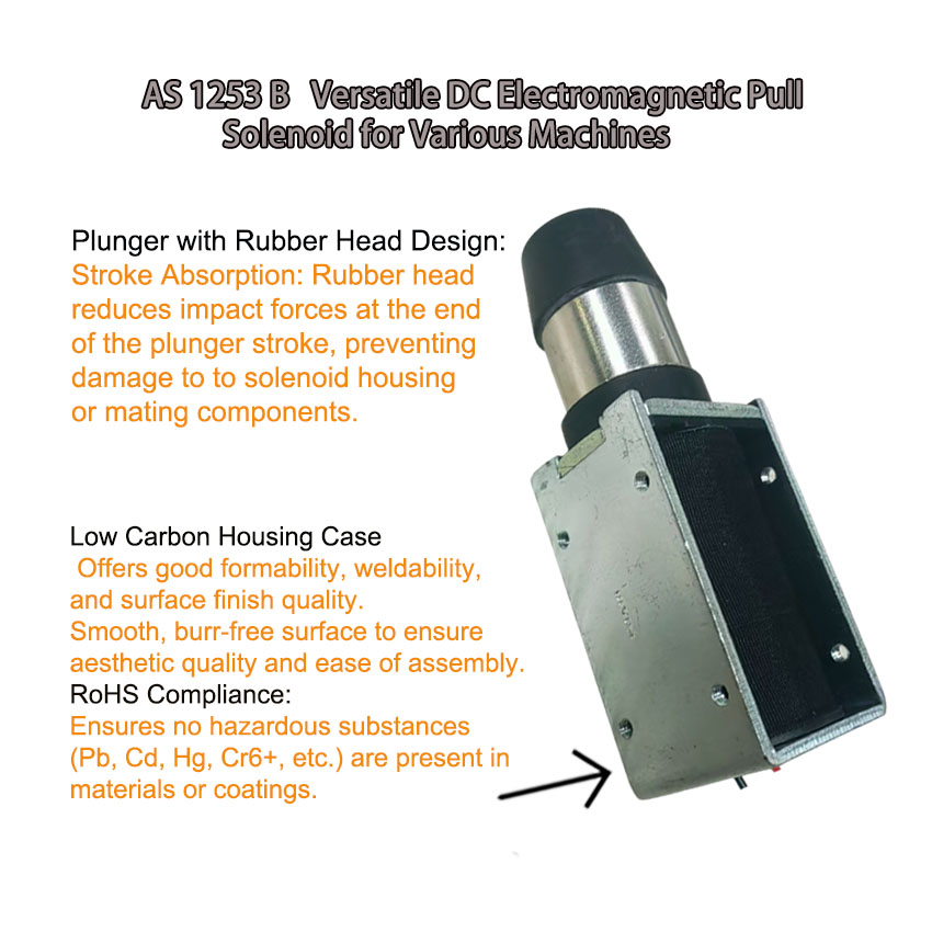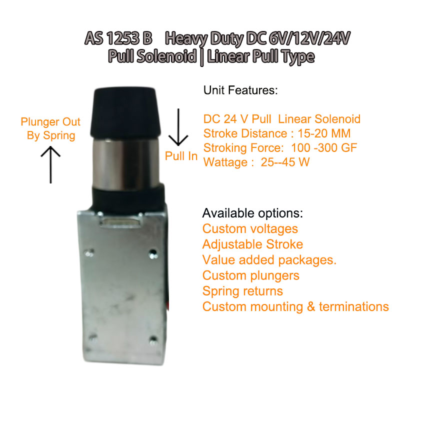 A3: The AS1253B is specifically a “pull-type” or “linear pull” solenoid. The plunger is drawn into the coil body when energized. For a pushing action, you would need a push-type solenoid or a pull solenoid with an external mechanism to convert the motion.
