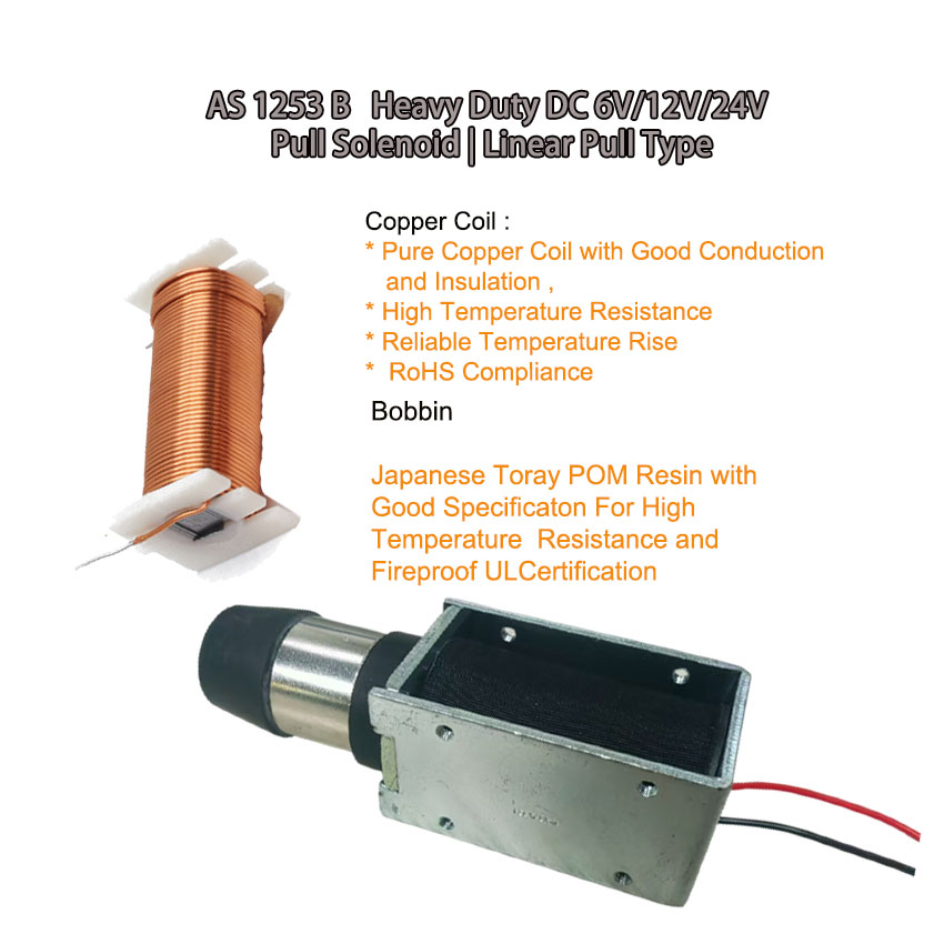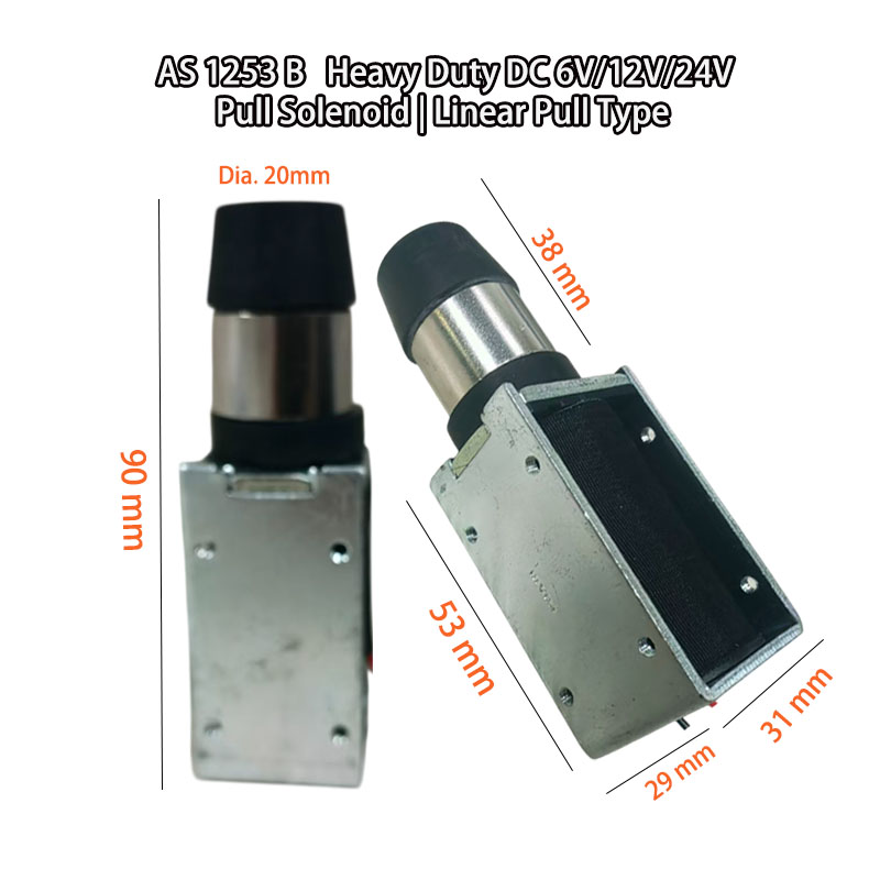 AS1253B High-Power Linear Pull Solenoids | 6V 12V 24V DC | Heavy-Duty Automation