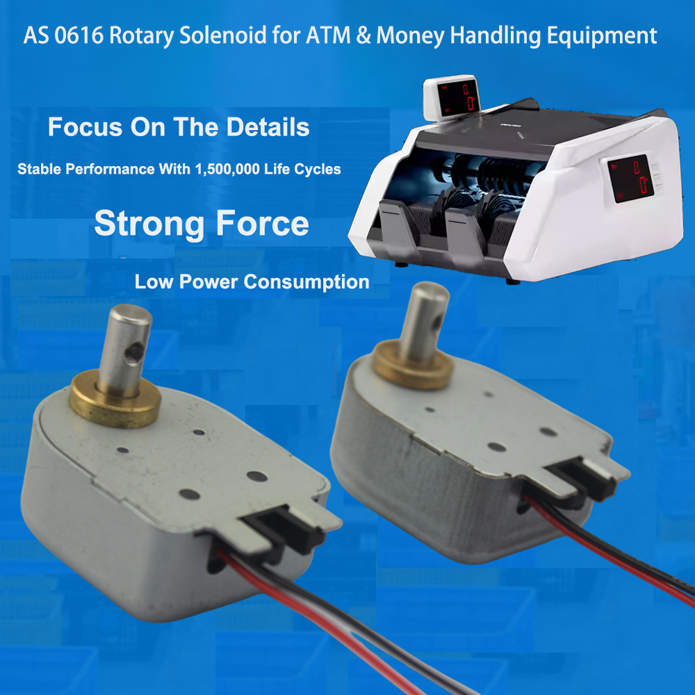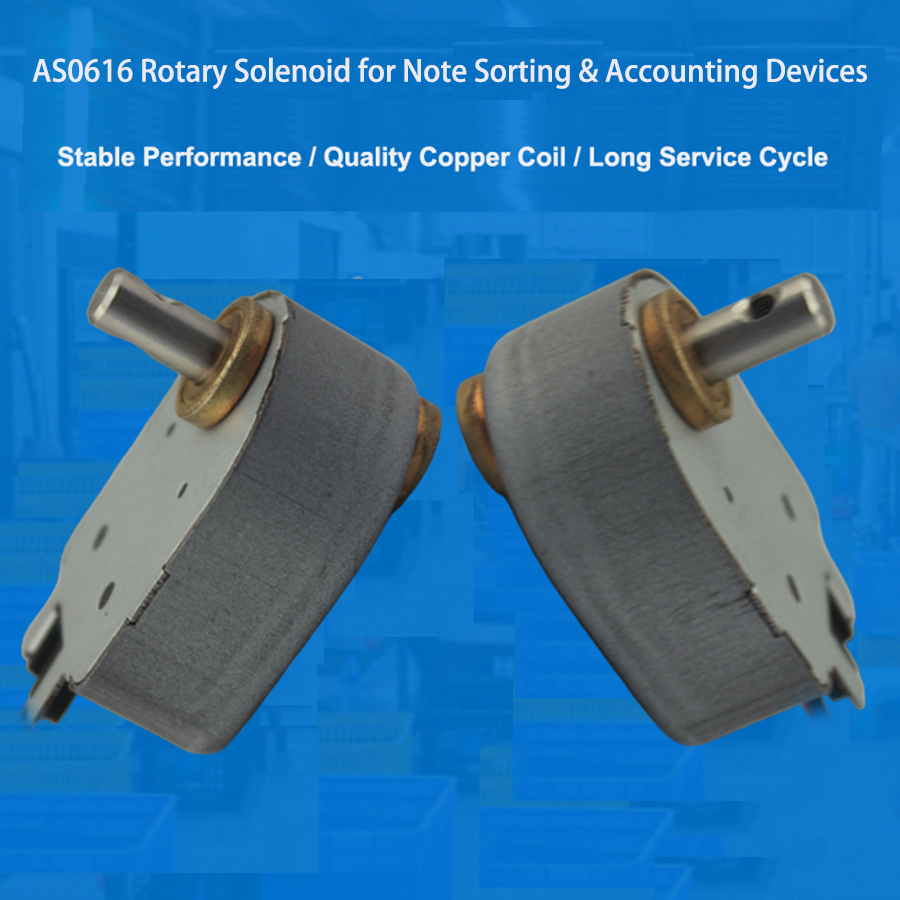 The AS 0616 rotary solenoid finds primary application in money accounting machines, currency counters, note sorting systems, and banking automation equipment. It facilitates precise angular motion, which is essential for functions like locking, releasing, positioning, and diverting banknotes.